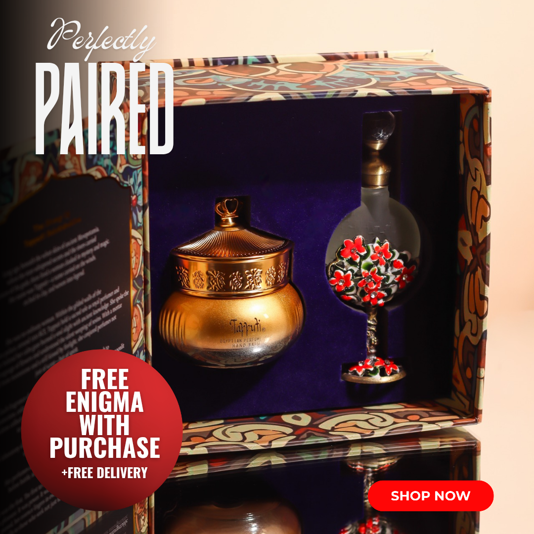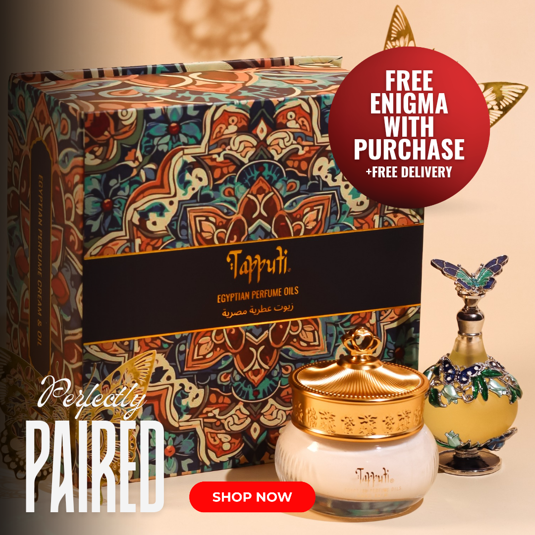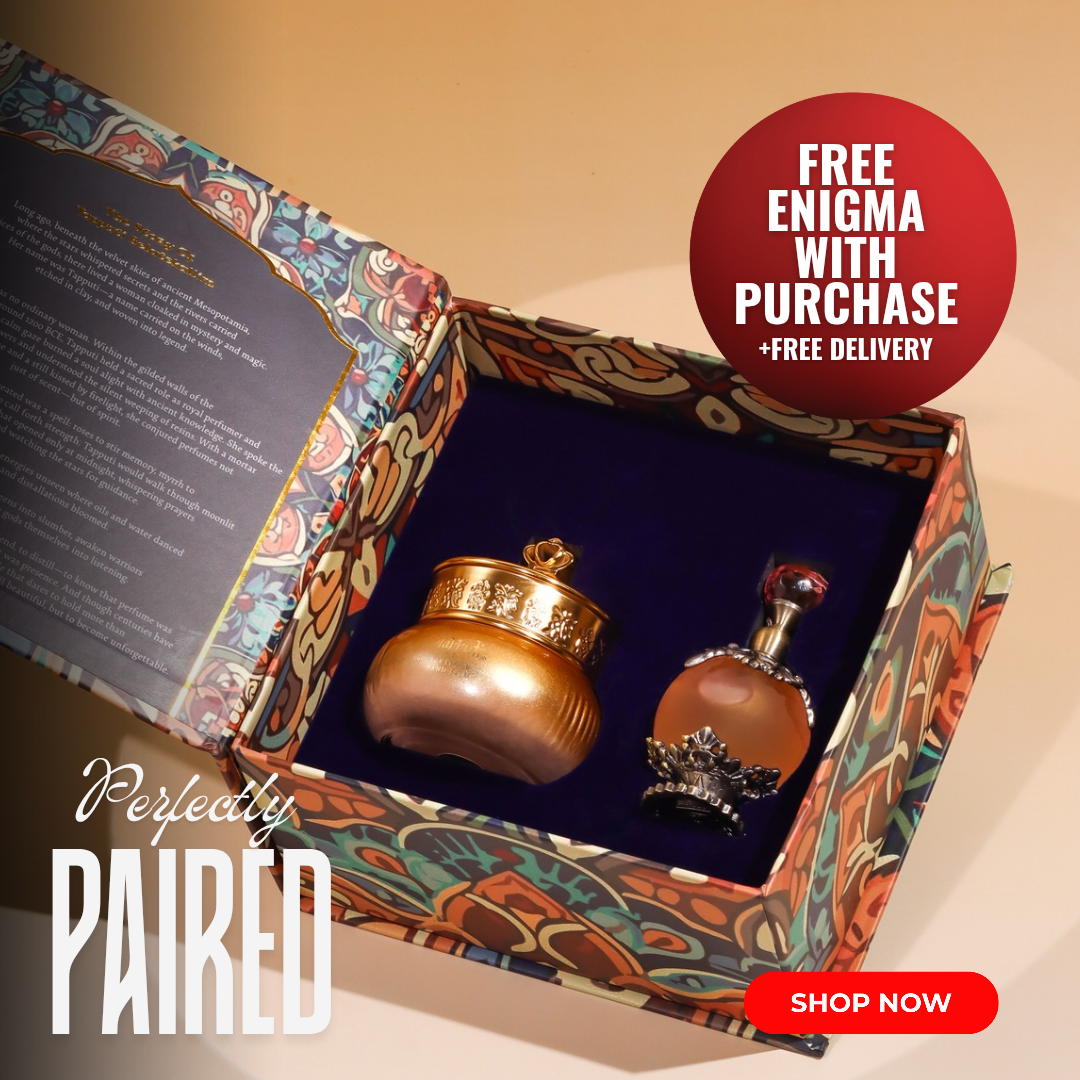 Arabian Rose Perfume Cream & Egyptian Rose Perfume Oil in Collectors Box.Limited Edition. RAMADAN Offer with any Perfectly Paired: FREE Oriental ENIGMA SET. ADD Perfectly Paired + Oriental Enigma Set to cart. Enigma will calculate to R0 FREE Delivery + R100 Voucher for next purchase.