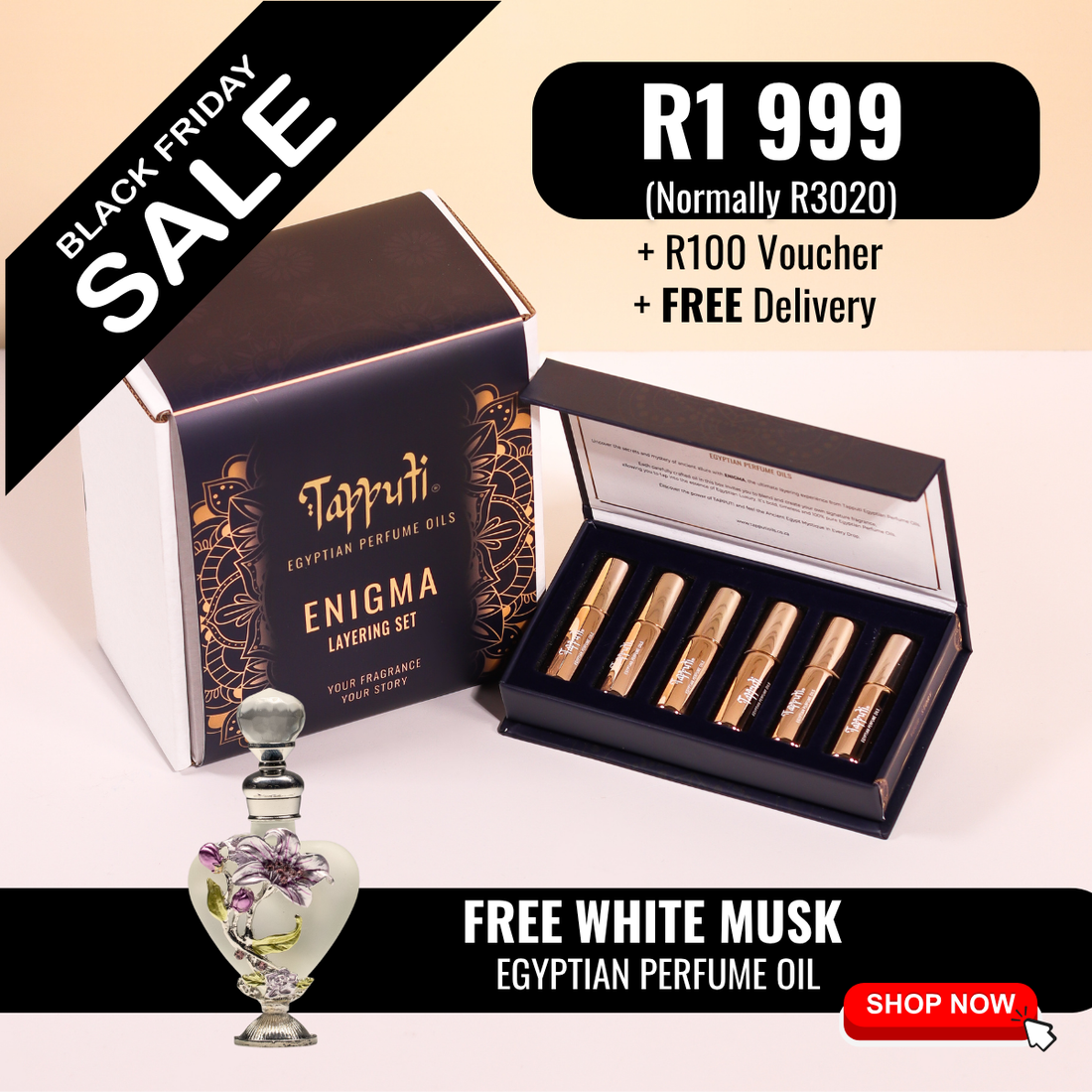 4 x Perfume Oils, 1 x Sampler Set, 1 x Enigma Set, 1 x Perfume Cream + Free Delivery + R100 Voucher. Limited Stock.