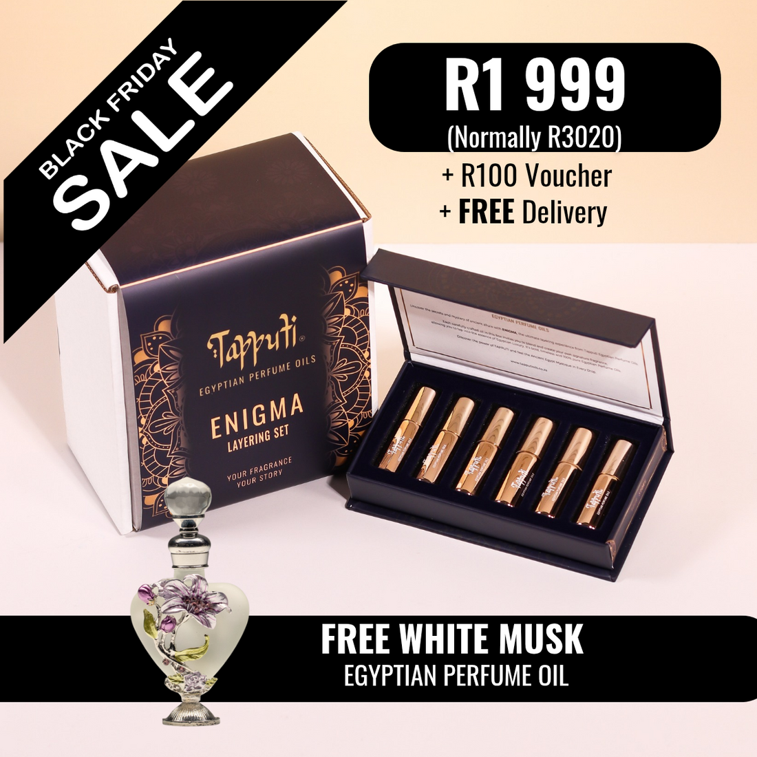 FREE White Musk with ENIGMA Set + R100 Voucher. Limited Stock. + Free Delivery