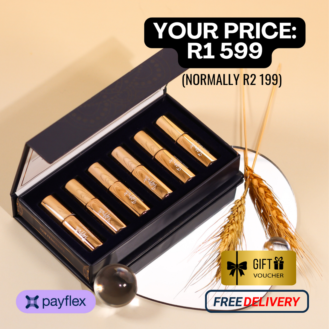 Customize Your Own: 4 x Perfume Oils, 1 x Sampler Set, 1 x Enigma Set, 1 x Perfume Cream + Free Delivery + R100 Voucher. Limited Stock.
