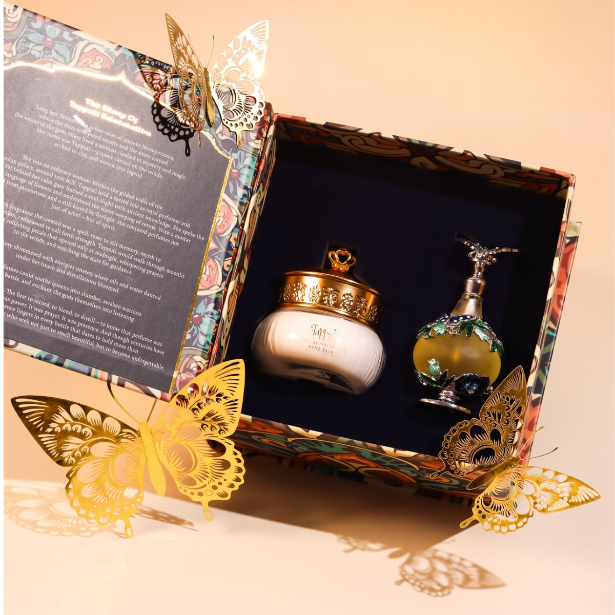 Crafted for those who appreciate the finest in both skincare and fragrance, this luxurious Perfume Cream collection promises to pamper your skin while enveloping it in the sophisticated scents of Tapputi's signature perfume oils.